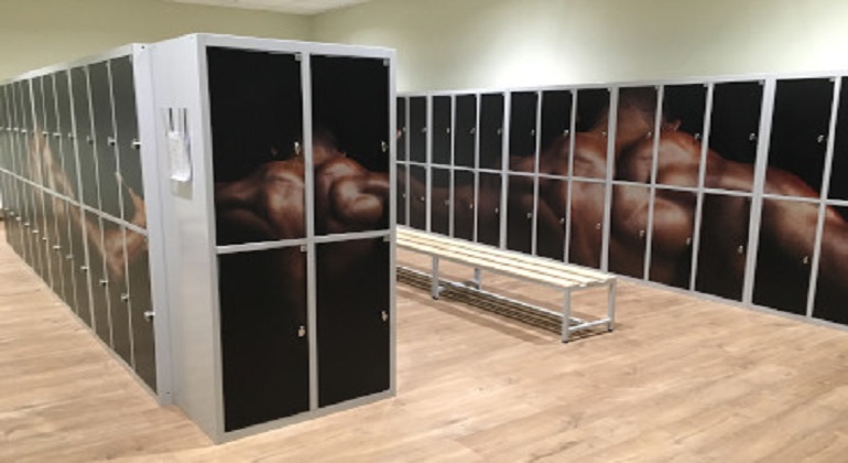 To właśnie tego typu szafki przeznaczone dla kilku użytkowników (np. dla 6, 8, 10 sportowców) można za sobą połączyć (czemu służą celowe otwory produkcyjne), co wykreuje dodatkową powierzchnię na frontach szaf, na której można zamieścić oryginalny nadruk UV, fototapetę – czyli coś, co odmieni całe wnętrze szatni.